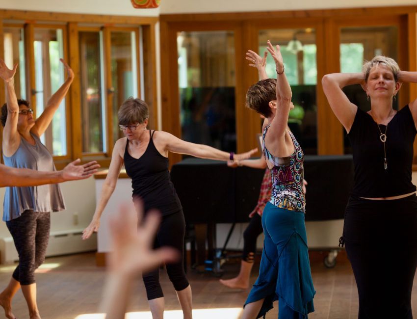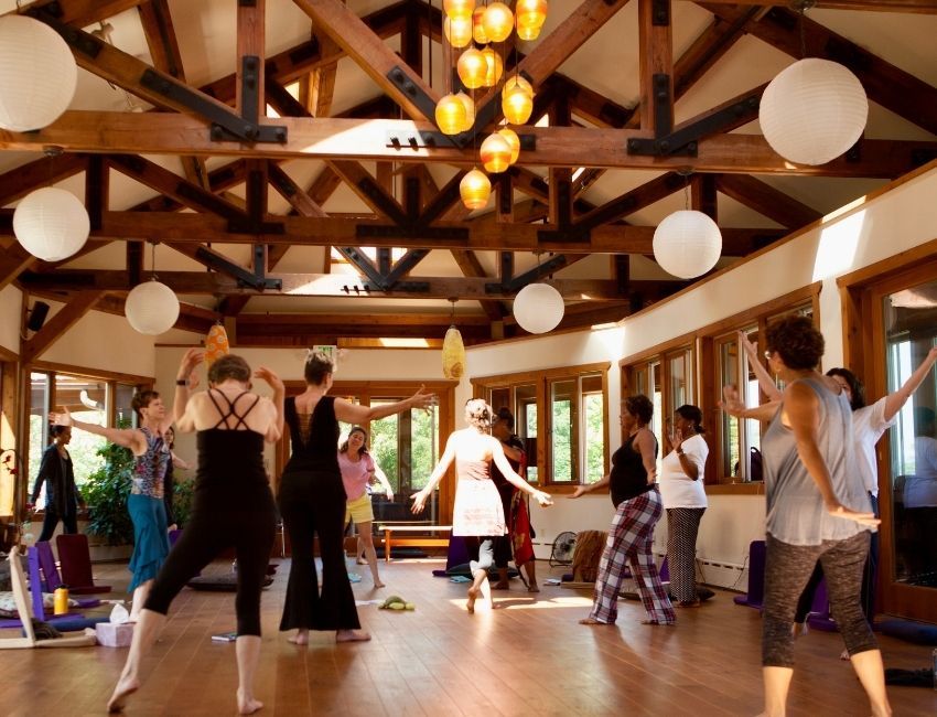 Moving Meditation, Dance Yourself Free, Nia Moving to Heal, Soul Moves, Nature Walks, and more. The main studio has a soaring ceiling, a chandelier that is a work of art, and windows for a stunning panoramic view of the Gunk mountain range. This special room holds space for all that is possible.
